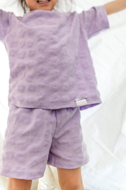 Grow With Me Wide Shorts | Lavender Macaron Flowers